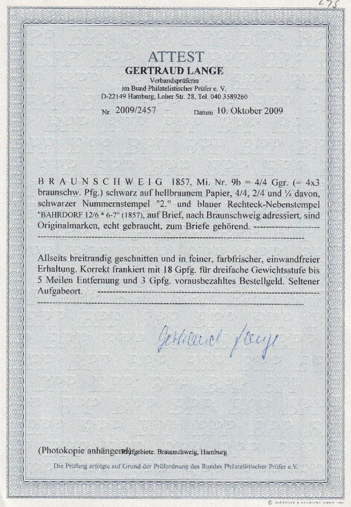 | Prüfer: | Lange, Gertraud (BPP (Bund Philatelistischer Prüfer)) |