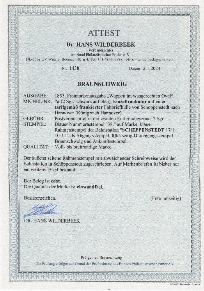 | Prüfer: | Wilderbeek, Hans (BPP (Bund Philatelistischer Prüfer)) |