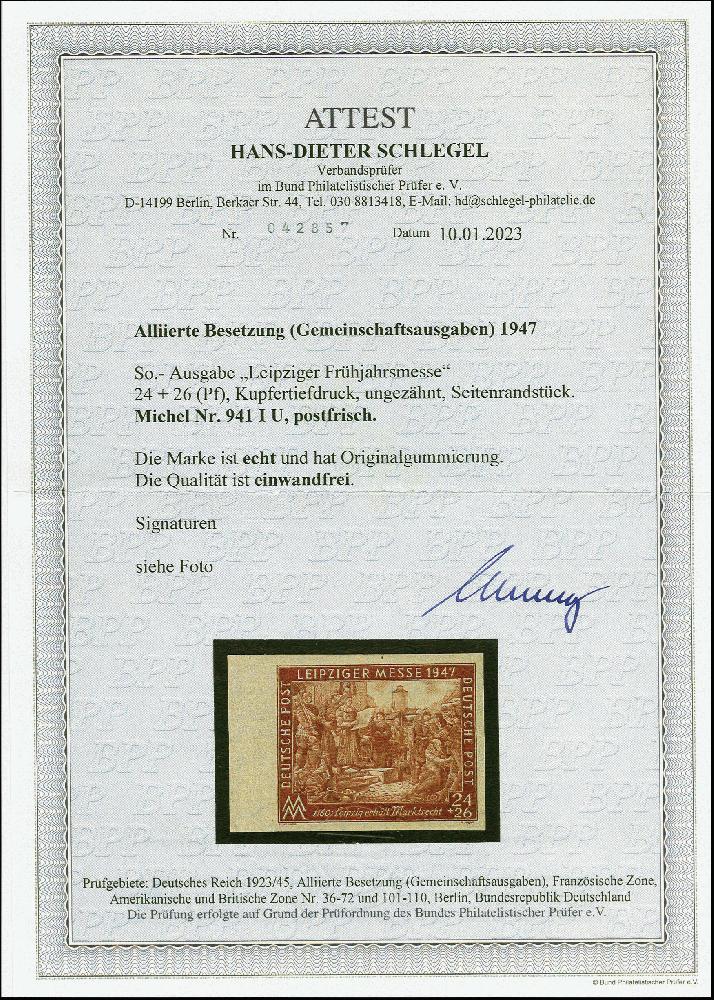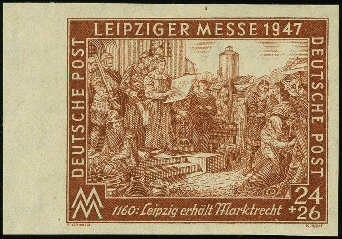 | Zusatzinformationen und Suchstichworte: | 383. Auktion Heinrich Köhler 14.–15. & 18.–23. März 2024 Los 7746 Gemeinschaftsausgaben 1947, Leipziger Frühjahrsmesse 24 Pfennig ungezähnt, Randstück, postfrisch, in tadelloser Erhaltung Ausruf 150,00 EUR |