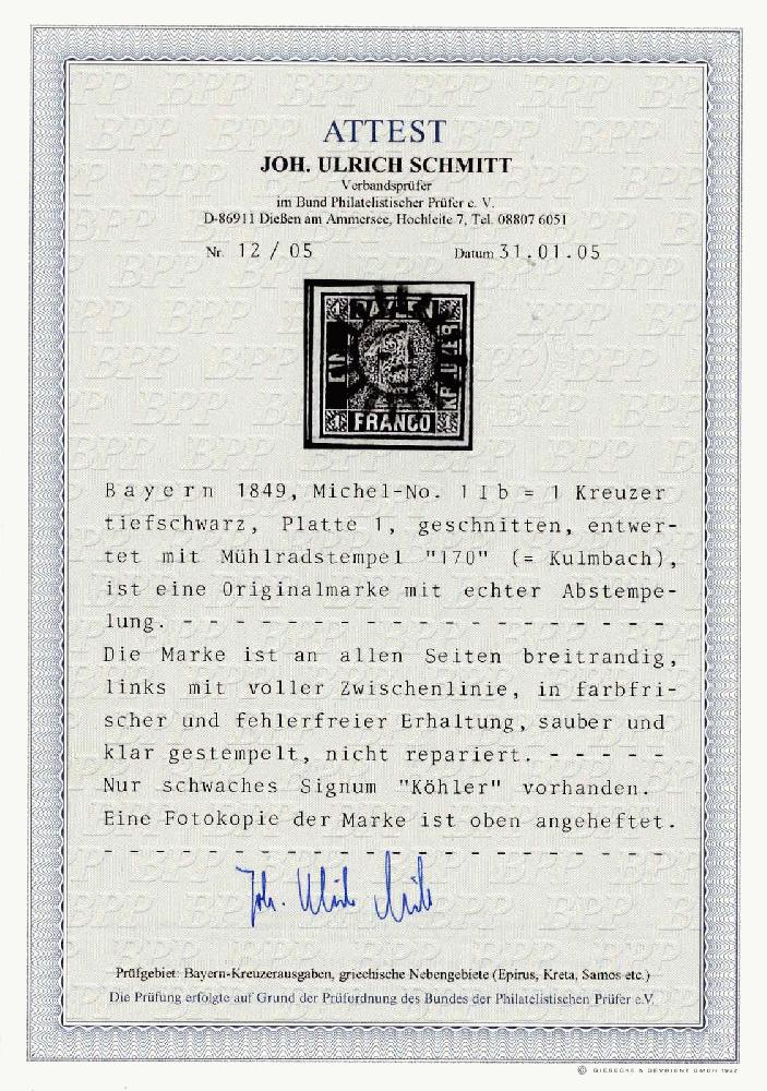| Prüfer: | Schmitt, Joh. Ulrich (BPP (Bund Philatelistischer Prüfer)) |