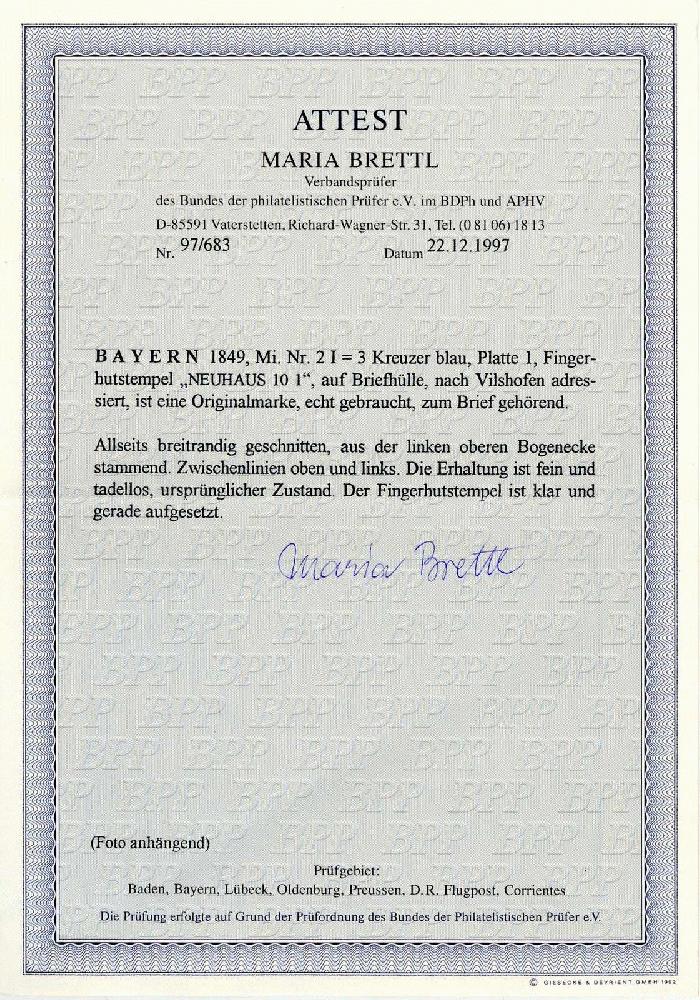| Prüfer: | Brettl, Maria (BPP (Bund Philatelistischer Prüfer)) |