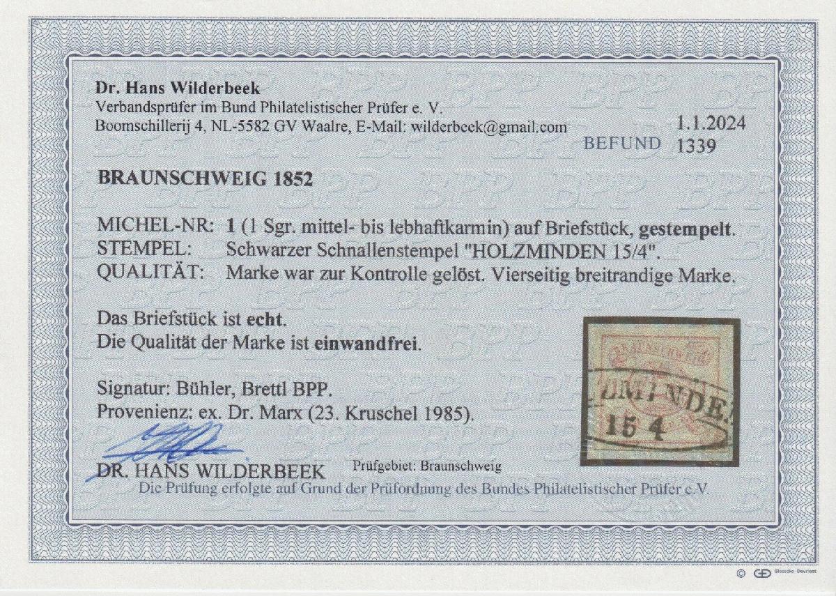 | Zusatzinformationen und Suchstichworte: | Südphila P. Feuser 101. Auktion 16. März 2024 Los 53 Altdeutschland Braunschweig 1 Sgr. lilarosa, breitrandig auf Pracht-Briefstück mit seltenem Schnallenstempel HOLZMINDEN Ausruf 150,00 EUR |