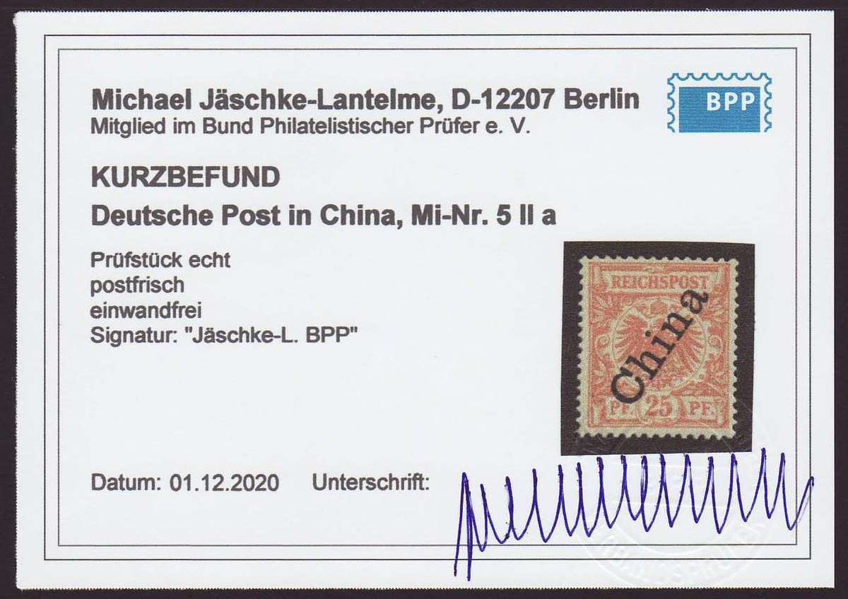 | Zusatzinformationen und Suchstichworte: | Christian E. Geigle Briefmarkenfachhandel Los 0003744530 Deutsche Auslandspost China 1898, Freimarken mit diagonalem Aufdruck "China", 25 Pf. gelblichorange, postfrisches Kabinettstück, FKB Jäschke-Lantelme "einwandfrei". Festpreis 59,00 EUR |