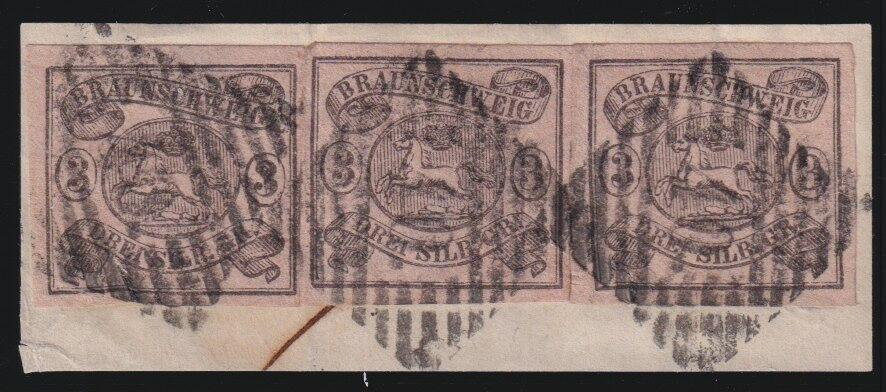 | Zusatzinformationen und Suchstichworte: | Südphila P. Feuser 101. Auktion 16. März 2024 Los 176 Altdeutschland Braunschweig 3 Sgr. a. lebhaftrosa, drei breitrandige Expemplare auf Kabinett-Briefstück mit Stempel "10" Calvoerde Ausruf 200,00 EUR |