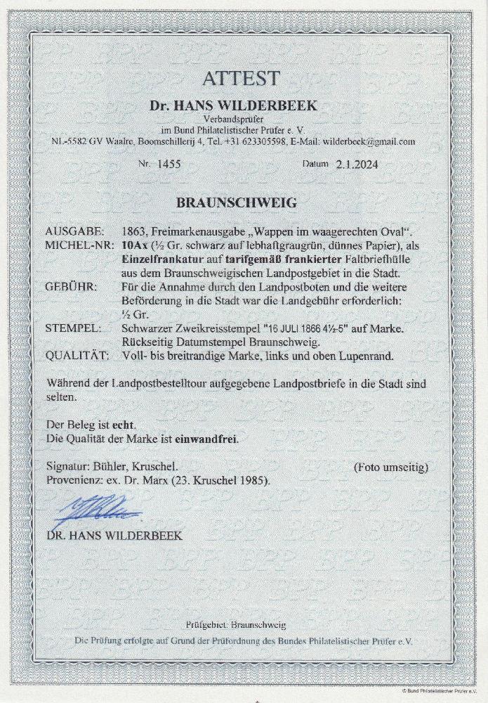 | Zusatzinformationen und Suchstichworte: | Südphila P. Feuser 101. Auktion 16. März 2024 Los 214 Altdeutschland Braunschweig 1/2 Gr. a. grün, noch voll- bis breitrandiges Prachtstück mit K2 BRAUNSCHWEIG auf kleinem Ortsbrief Ausruf 300,00 EUR |