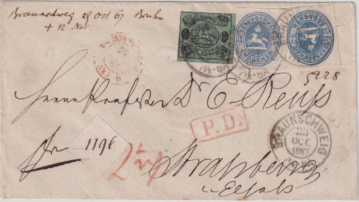 | Zusatzinformationen und Suchstichworte: | Südphila P. Feuser 101. Auktion 16. März 2024 Los 228 Altdeutschland Braunschweig 1/2 Gr. a. grün (berührt) nebst zweimal 2 Gr. blau mit teilweiser Scherentrennung als seltene Frankatur auf dek. Brief aus Braunschweig nach Straßburg Ausruf 200,00 EUR |