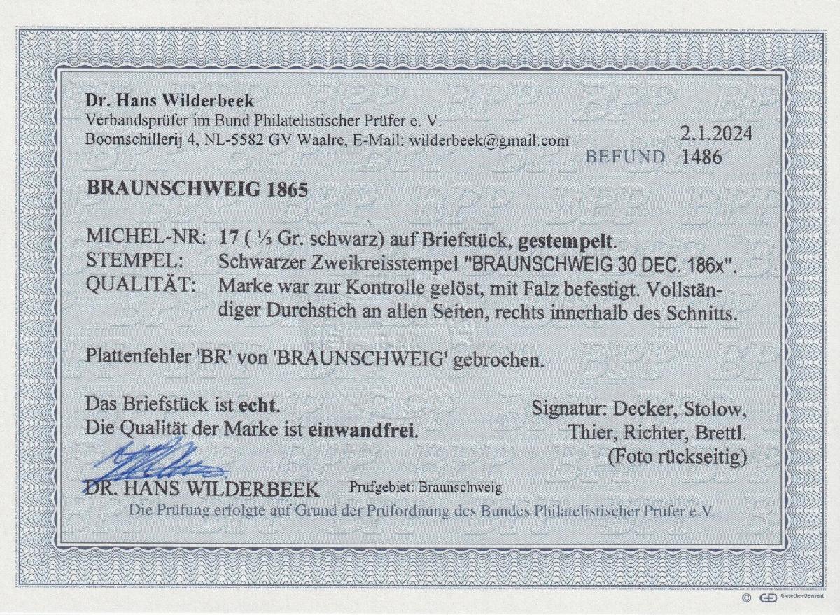 | Prüfer: | Wilderbeek, Hans (BPP (Bund Philatelistischer Prüfer)) |