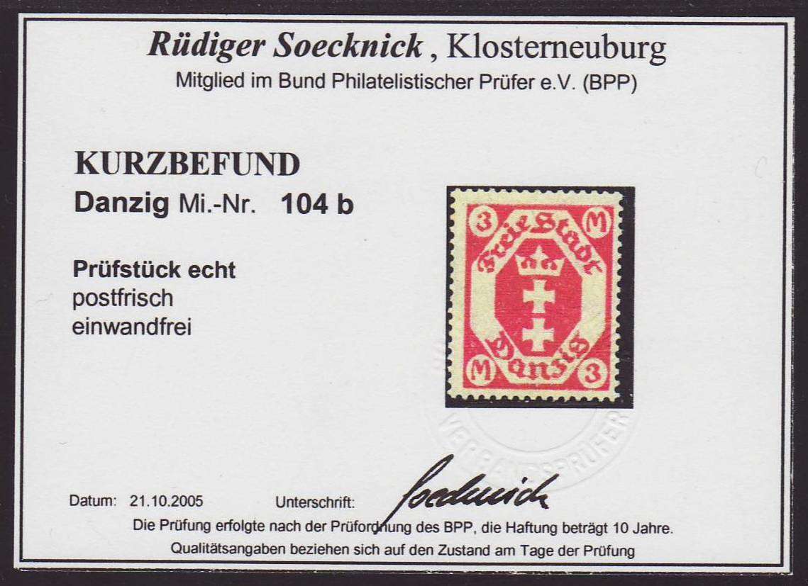 | Zusatzinformationen und Suchstichworte: | Christian E. Geigle Briefmarkenfachhandel Los 0003134376 Danzig 1922, Freimarken: Kleines Staatswappen im Achteck (III), 3 M. dunkelkarminrot, postfrisches Kabinettstück dieser guten Farbe, unsigniert mit FKB Soecknick "einwandfrei". Festpreis 165,00 EUR |
