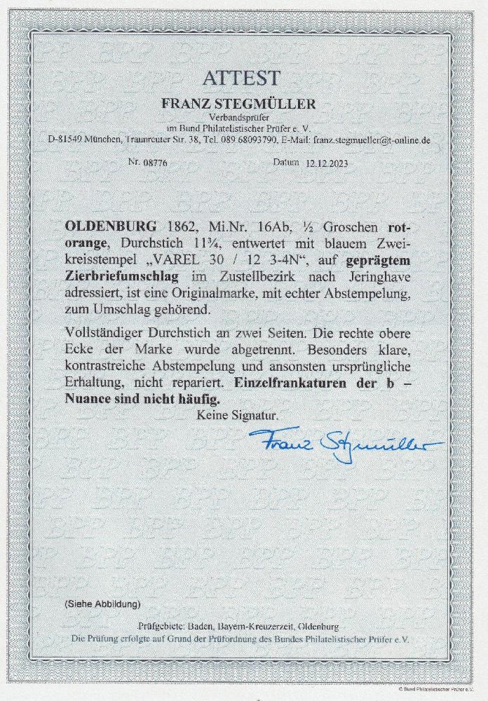 | Prüfer: | Stegmüller, Franz (BPP (Bund Philatelistischer Prüfer)) |