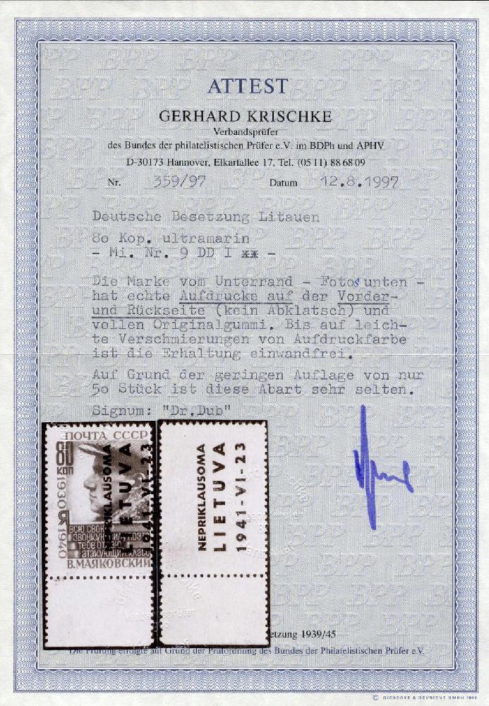 | Prüfer: | Krischke, Gerhard (BPP (Bund Philatelistischer Prüfer)) |