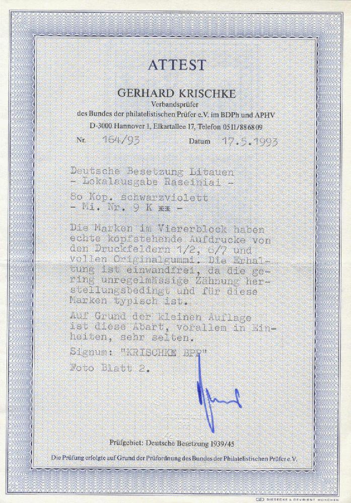 | Prüfgebiet: | Deutsche Besetzung WK 2 Litauen Raseiniai |