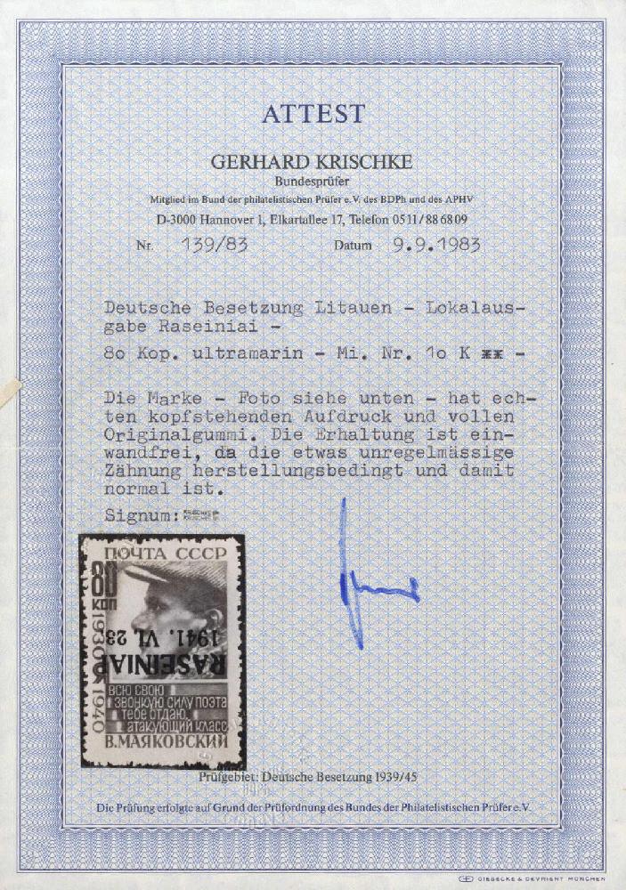 | Prüfgebiet: | Deutsche Besetzung WK 2 Litauen Raseiniai |