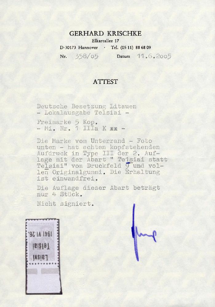 | Prüfgebiet: | Deutsche Besetzung WK 2 Litauen Telšiai |