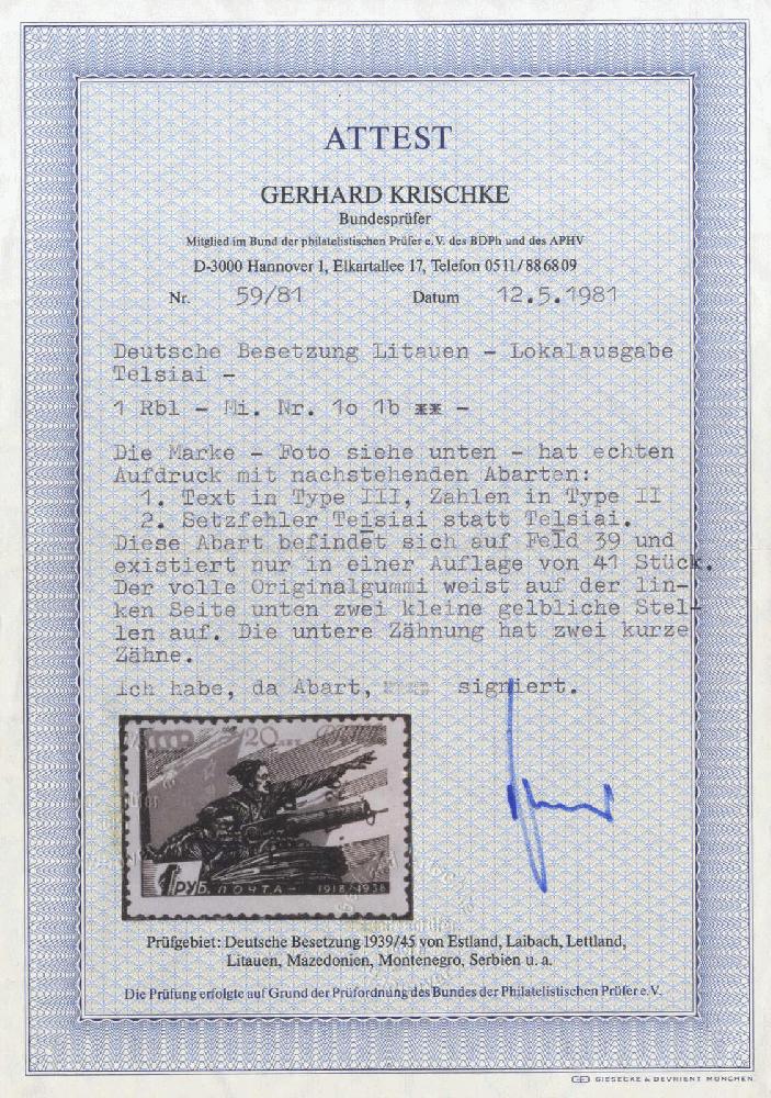 | Prüfgebiet: | Deutsche Besetzung WK 2 Litauen Telšiai |