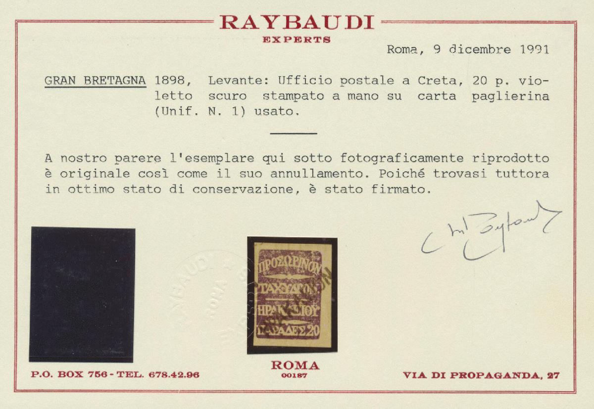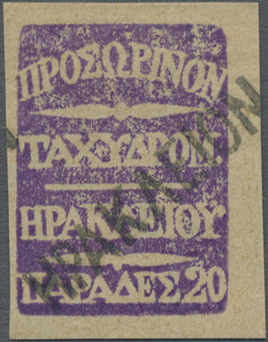 | Zusatzinformationen und Suchstichworte: | Christoph Gärtner 58. Auktion 19. - 23. Februar 2024 Los 2955 D Kreta Britische Verwaltung Provinz Herakleion 1898,20 pa. lebhaftviolett, gestempelt "HERAKLEION" Zuschlag 150,00 EUR |