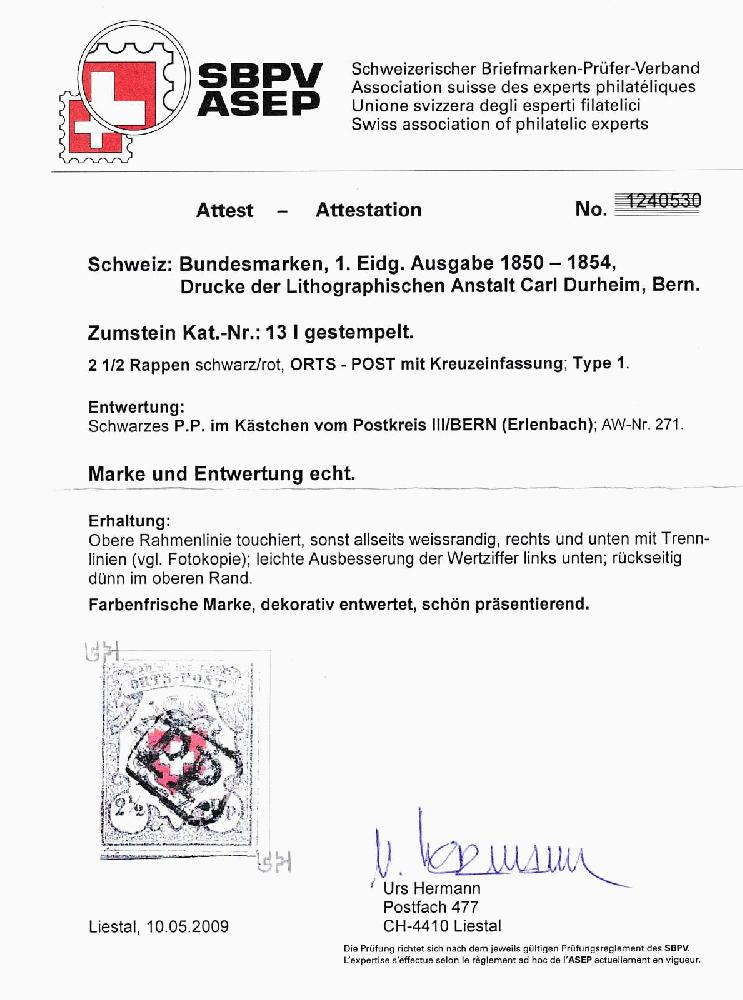 | Prüfer: | Hermann, Urs (SBPV / ASEP (Schweizerischer Briefmarken-Prüfer-Verband)) |