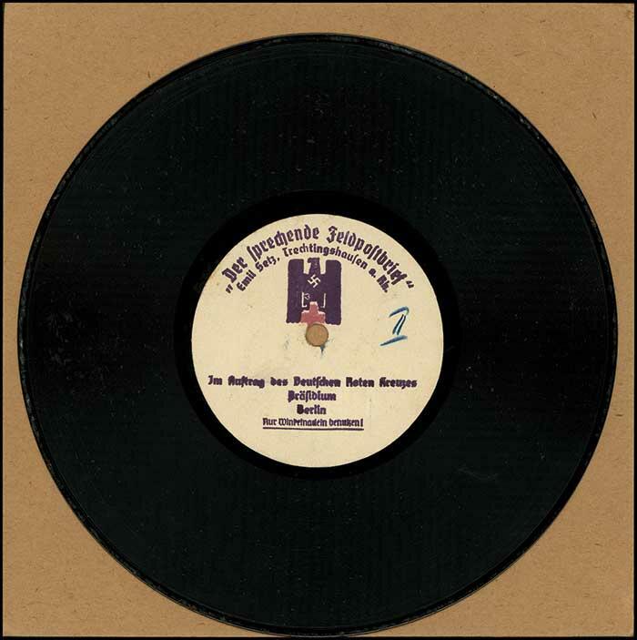 | Zusatzinformationen und Suchstichworte: | Dr. Reinhard Fischer 196. Auktion 1. - 3. Februar 2024 Los 4525 Deutsche Besetzung II. WK, Feldpostmarken 1941, SCHALLPLATTEN-BRIEF, "... sprechender Feldpostbrief" mit Schallplatte im Durchmesser 19 cm im zweifarbigen Vordruck-Umschlag "... Im Auftrag des Deutschen Roten Kreuzes" ab WIESBADEN 23.6.41 nach Lingenau, Briefstempel "Reserve-Lazarett III Frankfurt", verwundete Soldaten konnten kostenlos auf diesem Wege Nachrichten in die Heimat senden, komplettes Ensemble in Ausführung der Firma Emil Seitz mit zugehöriger, namensgleich beschrifteter und gleich dem Umschlag etikettierter Schallplatte, vollständige Innenverpackung, rückseitig auf dem Umschlag weitere Hinweise zum Gebrauch, Umschlag mit Transportspuren, ohne Nadel, Klappe fehlt, angesichts der Begleitumstände jedoch von untergeordneter Bedeutung, gute Gesamterhaltung, große Seltenheit Ausruf 900,00 EUR |