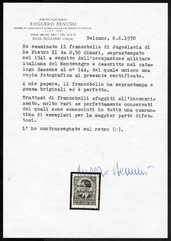 | Zusatzinformationen und Suchstichworte: | Viennafil 83. Live-Auktion 21. - 23. November 2023 Los 627 Italien Besetzung II. WK Montenegro 1942, Re Pietro, non emesso, 0,50 p. arancio, nuovo con gomma integra (traccia di impronta di dito) Zuschlag 210,00 EUR |