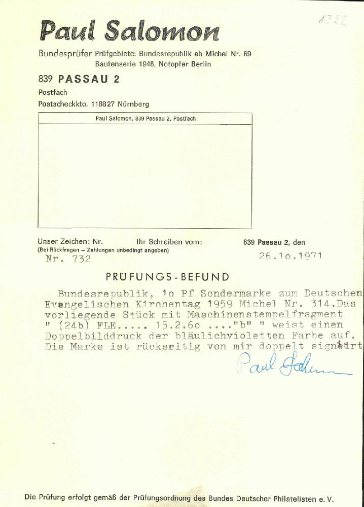 | Prüfer: | Salomon, Paul (BPP (Bund Philatelistischer Prüfer)) |