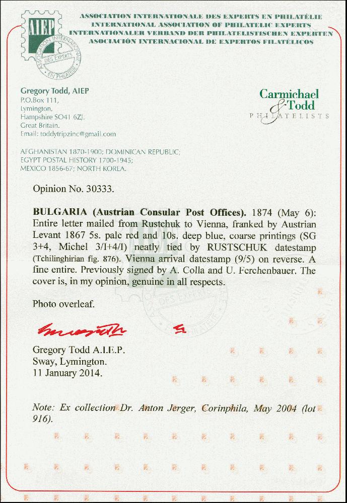 | Zusatzinformationen und Suchstichworte: | 383. Auktion Heinrich Köhler 14.–15. & 18.–23. März 2024 Los 1079 Bulgarien "RUSTSCHUK 6/5" (1874) auf 1867, 5 So. und 10 So., auf komplettem Faltbrief nach Wien Ausruf 200,00 EUR |