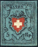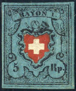| Zusatzinformationen und Suchstichworte: | Viennafil 83. Live-Auktion 21. - 23. November 2023 Los 2116 Schweiz 1850, 5 Rp schwarz/rot, Unterdruck blau sogenanntes dunkelblau, postfrisch, Zuschlag 1.000,00 EUR |
