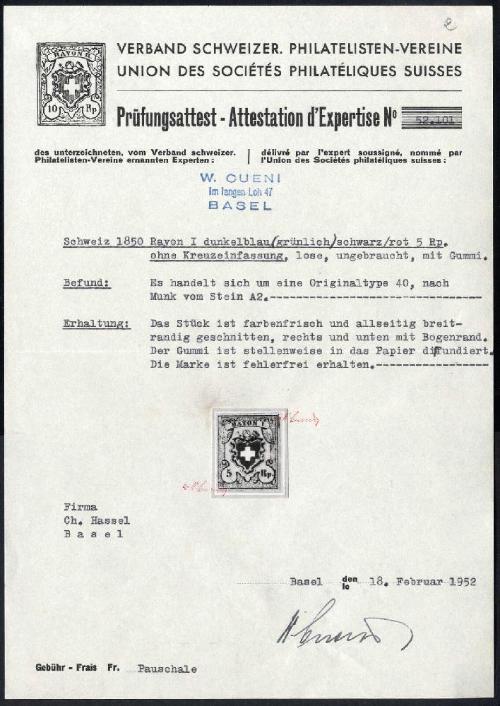 | Prüfer: | Cueni, Werner (SBPV / ASEP (Schweizerischer Briefmarken-Prüfer-Verband)) |