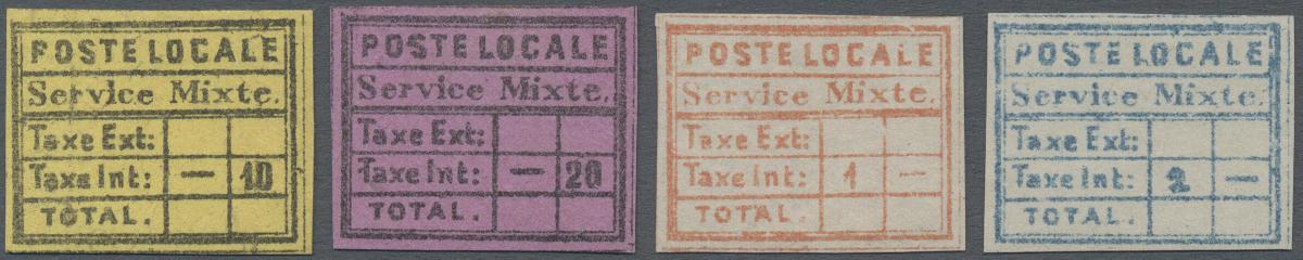 | Zusatzinformationen und Suchstichworte: | Christoph Gärtner 58. Auktion 19. - 23. Februar 2024 Los 3596 D Türkei 1866, Liannos Ortspost Konstantinopel, "POSTE LOCALE/Dienst Mixte", 0. 10 pa.-2 pi., kompletter Satz mit vier Werten, frische Farben, ungebrauchter Originalgummi zuvor gefalzt Ausruf 200,00 EUR |