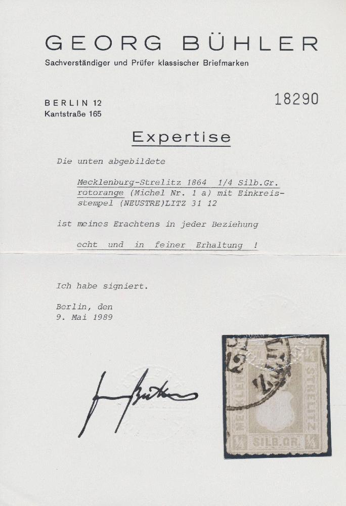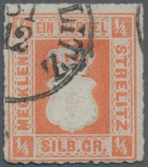 | Zusatzinformationen und Suchstichworte: | Christoph Gärtner 58. Auktion 19. - 23. Februar 2024 Los 4365 Altdeutschland Mecklenburg Strelitz 1864, 1/4 Sgr. schwärzlichrotorange, K 1 NEUSTRELITZ, Prachtstück Zuschlag 920,00 EUR |