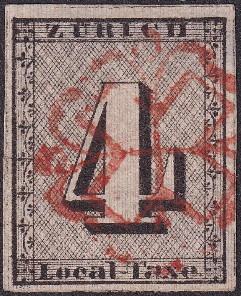 | Zusatzinformationen und Suchstichworte: | Luzernerraute Webshop Los 0000107208 Schweiz Kanton Zürich ZÜRICH 4, Type I, 1S mit senkrechten, gut sichtbaren Unterdruck-Linien. Breitrandiges, ausserordentlich frisches Stück mit Schnittlinien auf allen 4 Seiten - zart im Zentrum aufgeschlagene Zürcher Rosette. Linien-Unterdruck gut ausgeprägt, Marke rückseitig minim hell Festpreis 9.200,00 CHF |