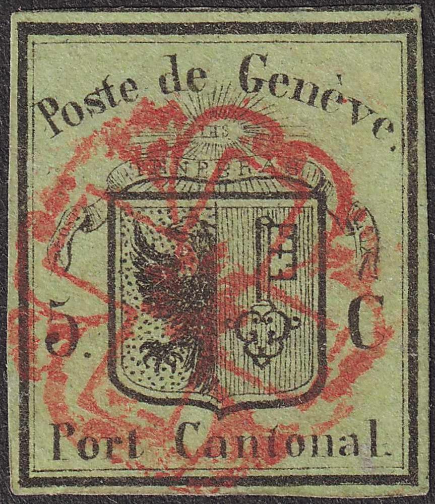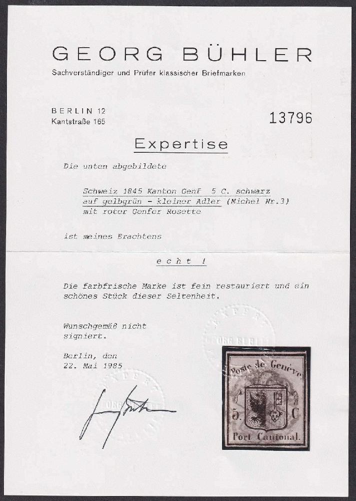 | Zusatzinformationen und Suchstichworte: | Luzernerraute Webshop Los 0000104958 Schweiz Kanton Genf KLEINER ADLER, Nr.5 mit ausserordentlich gutem Schnitt mit den meist sehr engen Marken-Abständen. Nebenmarke oben, rechts und unten ebenfalls minim sichtbar. Rückseitig kleine überdeckte Stelle, mit ideal zentrisch gesetzter Rosette, sehr schönes Stück! Festpreis 1.000,00 CHF |