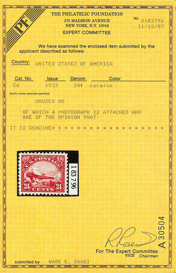 | Prüfer: | The Philatelic Foundation, (Prüferkommission) |
