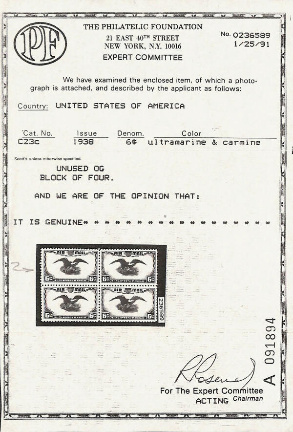 | Prüfer: | The Philatelic Foundation, (Prüferkommission) |
