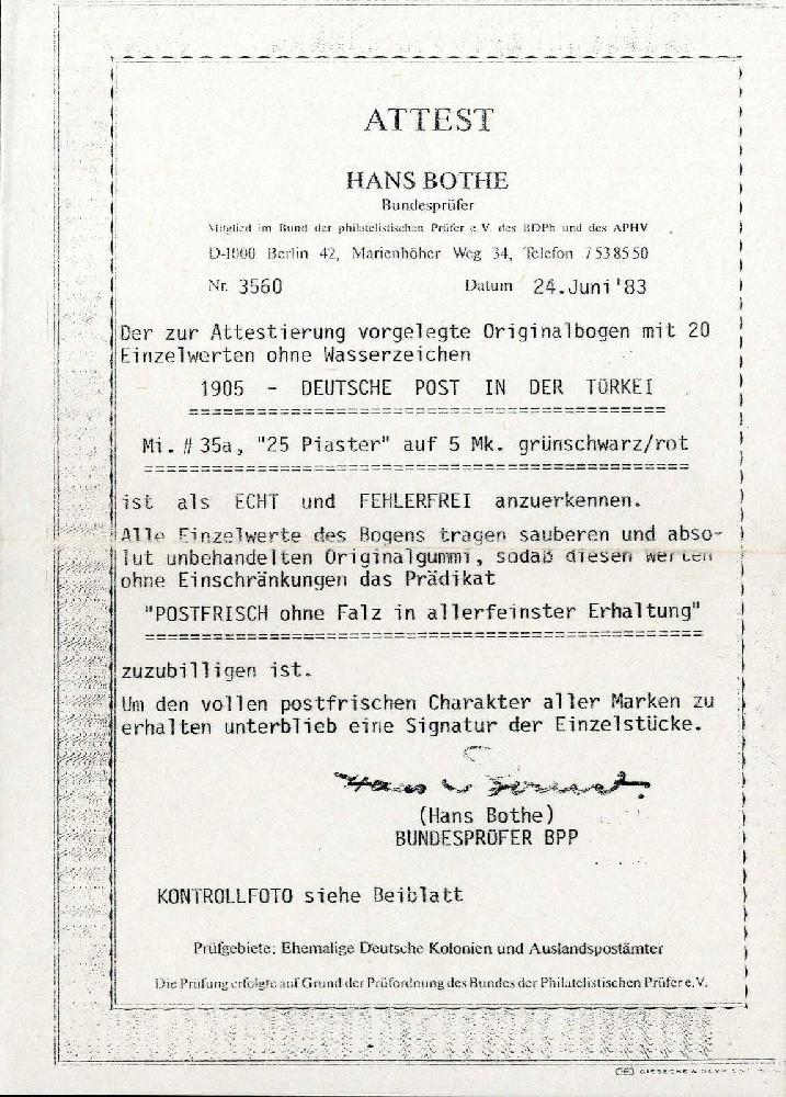 | Prüfer: | Bothe, Hans (BPP (Bund Philatelistischer Prüfer)) |
