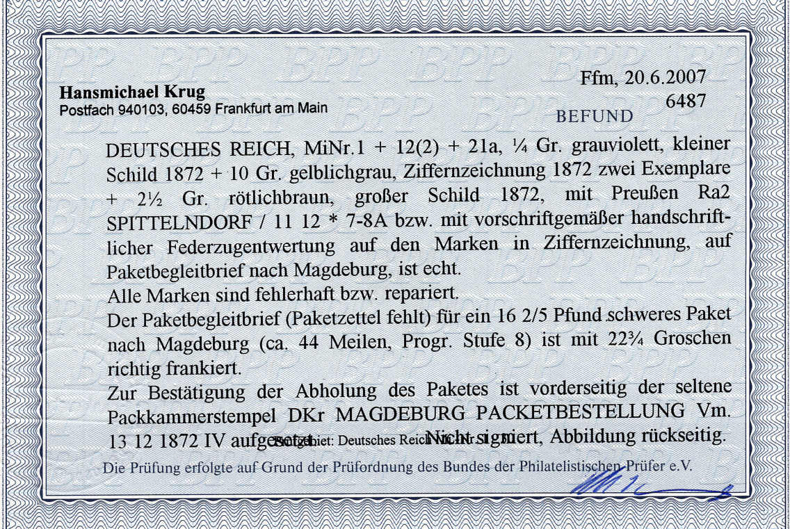 | Prüfer: | Krug, Hansmichael (BPP (Bund Philatelistischer Prüfer)) |