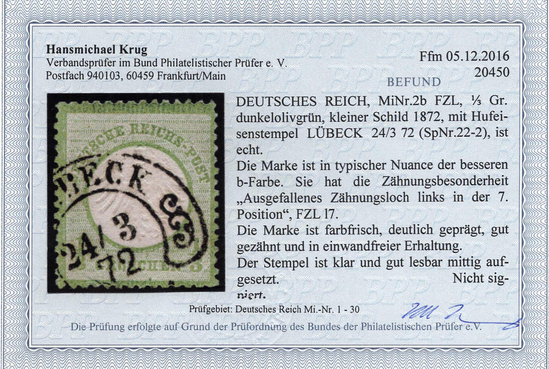 | Prüfgebiet: | Deutsches Reich 1871 - 1918 (Mi-Nr. 1 - 106) |