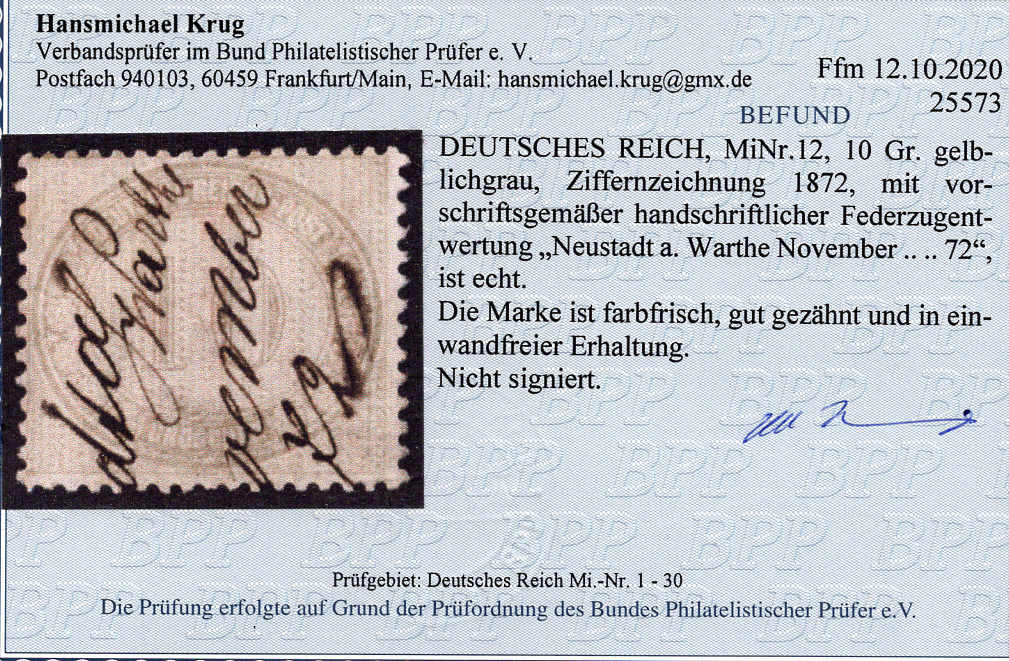 | Prüfer: | Krug, Hansmichael (BPP (Bund Philatelistischer Prüfer)) |