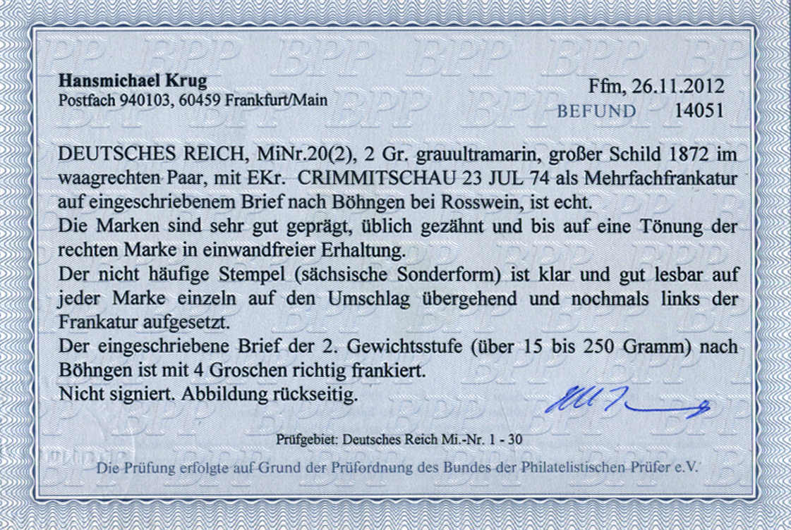 | Prüfer: | Krug, Hansmichael (BPP (Bund Philatelistischer Prüfer)) |