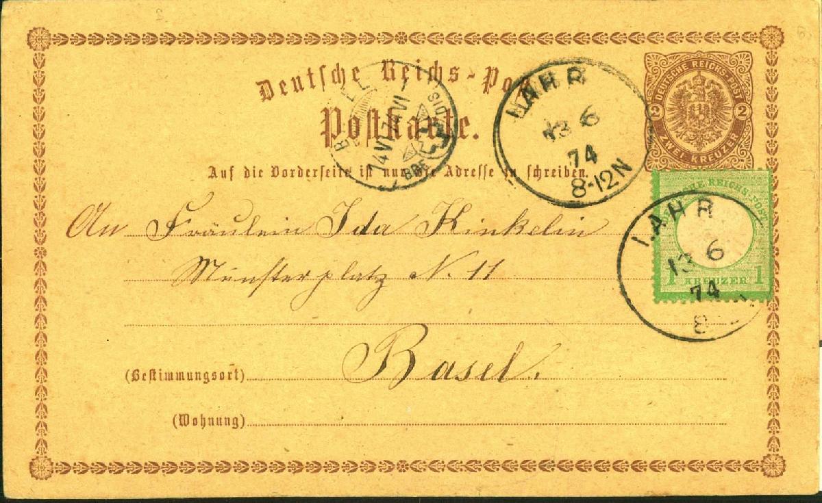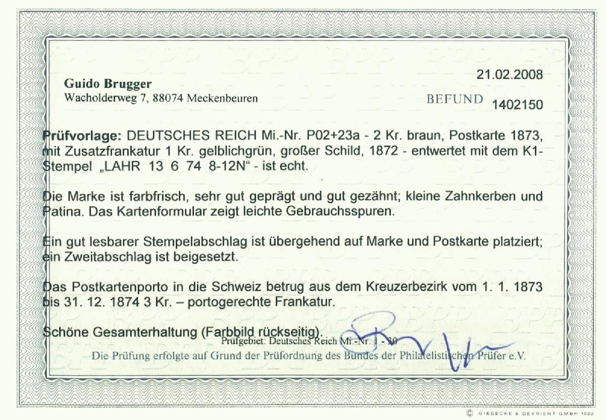 | Zusatzinformationen und Suchstichworte: | AAK Phila GmbH 81. Auktion 7. - 9. März 2024 Los 1848 Deutsches Reich 1 Kr gelbl´grün als ZuF a. 2 Kr GA portoger. v. Lahr n. Basel (AKS) Ausruf 30,00 EUR |