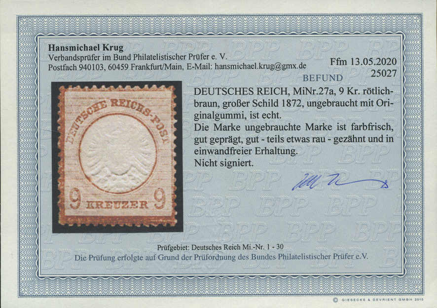 | Prüfer: | Krug, Hansmichael (BPP (Bund Philatelistischer Prüfer)) |