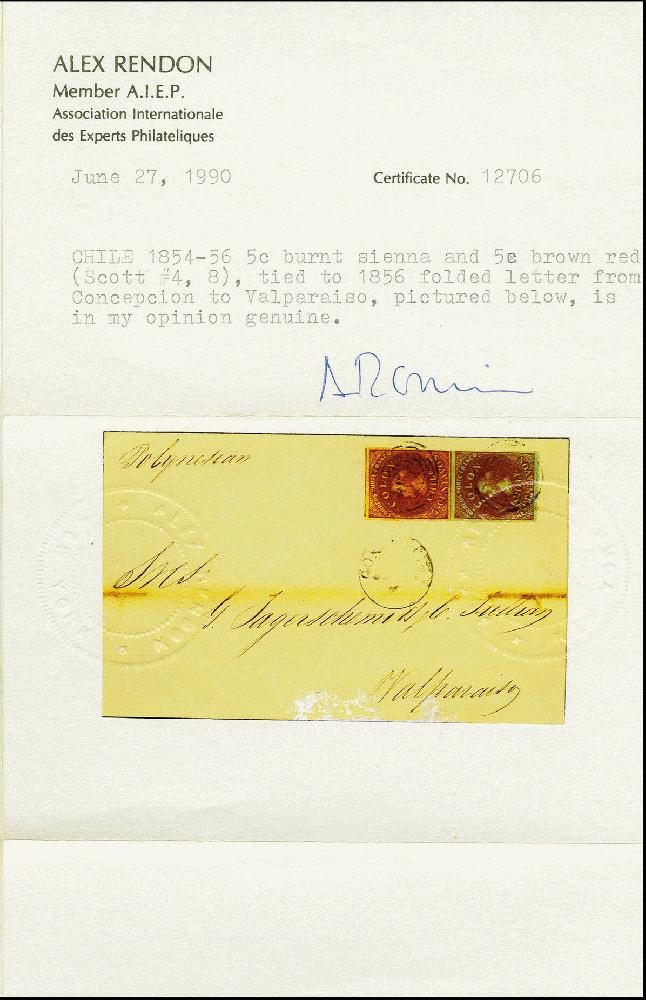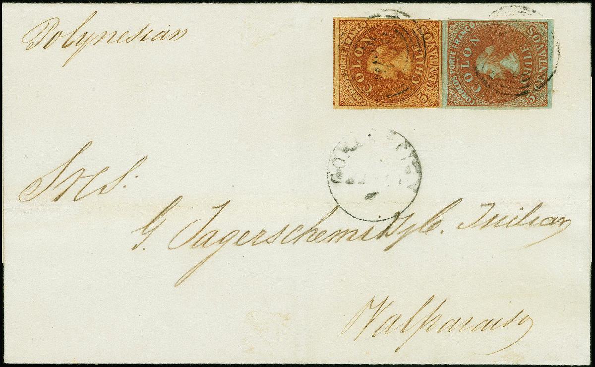 | Zusatzinformationen und Suchstichworte: | 383. Auktion Heinrich Köhler 14.–15. & 18.–23. März 2024 Los 1697 Chile 5 c. rosabraun kombiniert mit zweiter Londoner Druck 5 c. rotbraun auf bläulich, beide mit breiten Rändern, entwertet durch zarten 7 Linie Ziel mit daneben gesetztem "CONCEPCION" Datumsstempel zu Briefbogen, datiert März 24,1856, und mit dem Vermerk polynesischen zu Valparaiso. Die Ganzstück gesäubert und Adresse teils verbessert, noch schön. Ein außerordentlich seltene Kombination Ausruf 1.500,00 EUR |