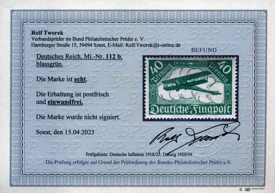 | Prüfer: | Tworek, Rolf (BPP (Bund Philatelistischer Prüfer)) |