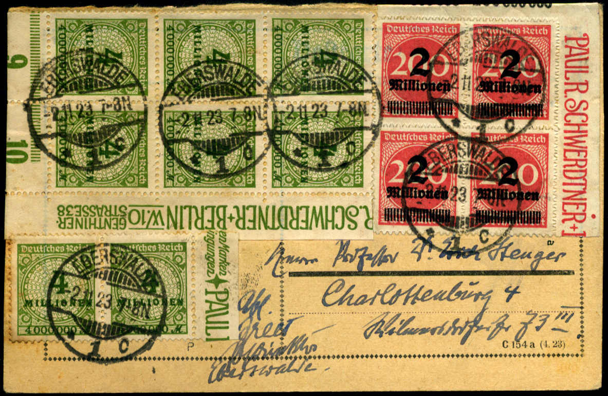 | Zusatzinformationen und Suchstichworte: | AAK Phila GmbH 81. Auktion 7. - 9. März 2024 Los 2150 Deutsches Reich 2 Mio a. 200 M bräunl´rot im 4er-Bl. (Infla x6!) re.o.Ecke (Oberrand über Kante verklebt) m. ZuF a. portoger. PK v. Eberswalde n. Charlottenburg, echt, farbfrisch, sehr guter Durchstich, (billige) ZuF m. leichten Verfärbungen, übl. Beförderungsspuren, OR-Einheiten a. Beleg nicht häufig", RR Ausruf 300,00 EUR |