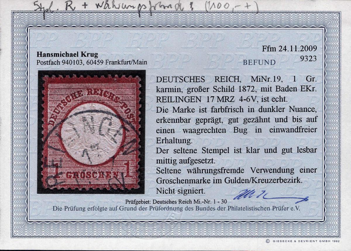 | Prüfgebiet: | Deutsches Reich 1871 - 1918 (Mi-Nr. 1 - 106) |