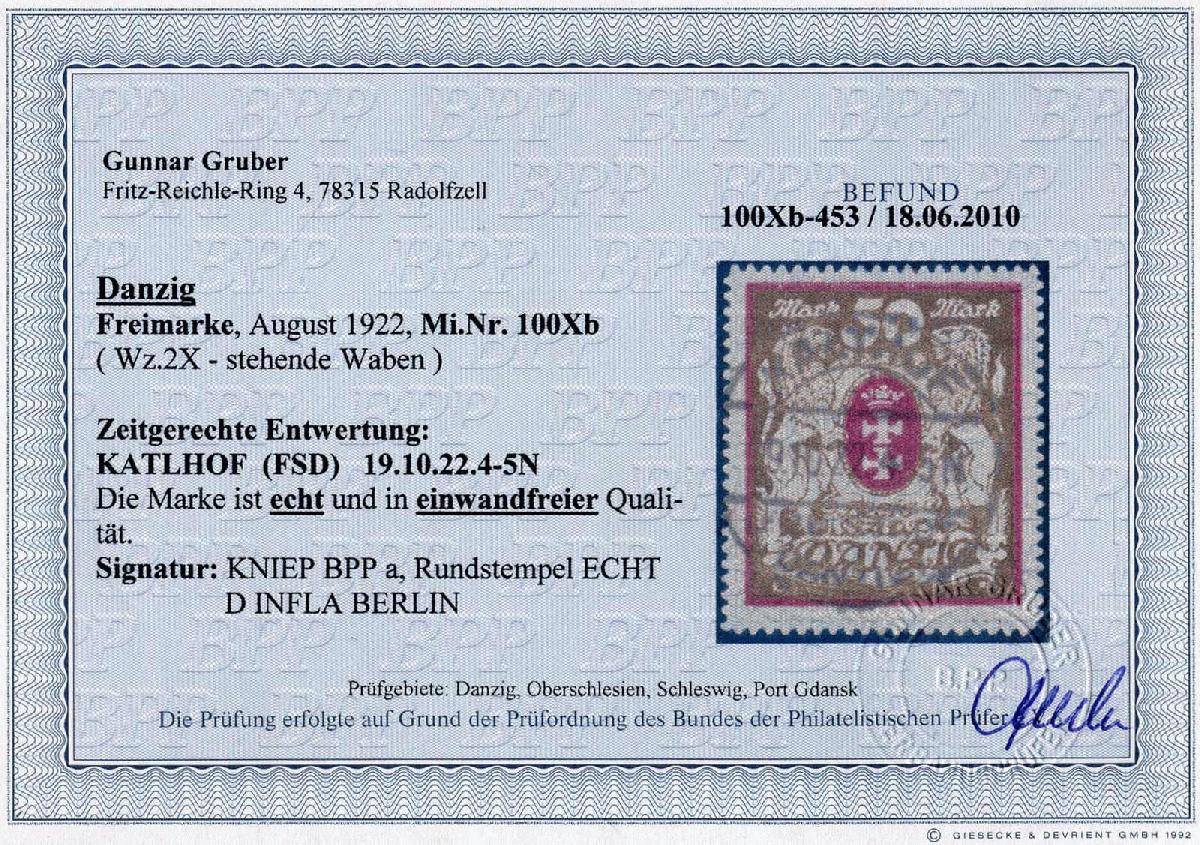 | Zusatzinformationen und Suchstichworte: | AAK Phila GmbH 81. Auktion 7. - 9. März 2024 Los 3941 Danzig 50 M Gr. Staatswappen zentr. rundgestpl. Luxus KALTHOF Ausruf 90,00 EUR |