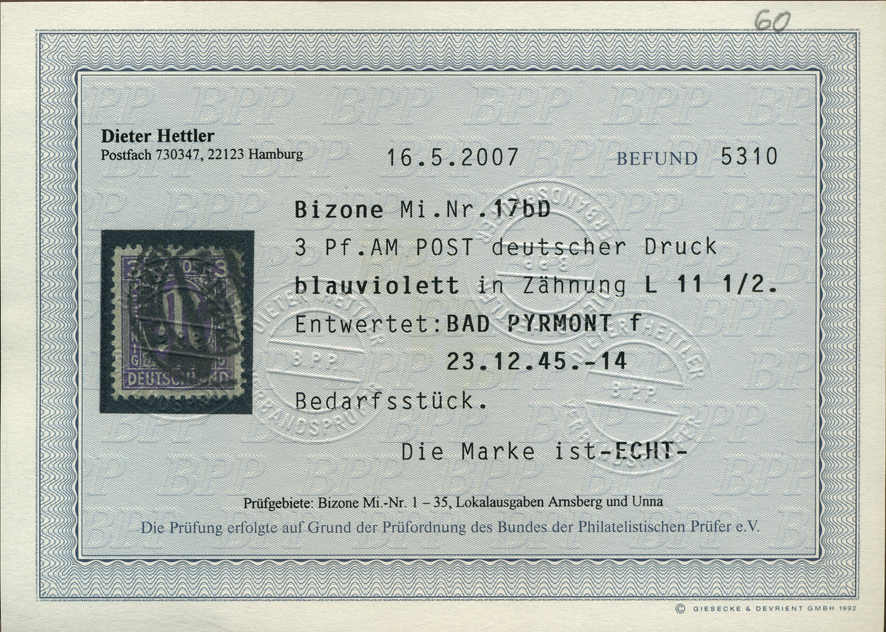 | Prüfgebiet: | Alliierte Besetzung Bizone |