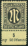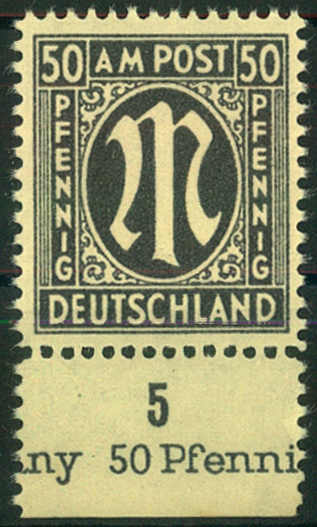 | Zusatzinformationen und Suchstichworte: | AAK Phila GmbH 81. Auktion 7. - 9. März 2024 Los 5079 Bizone 50 Pf AM-Post in bester Type v. UR, postfr. Luxus Ausruf 50,00 EUR |