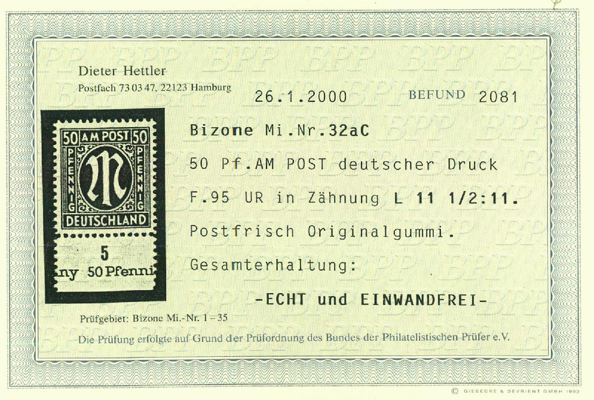 | Prüfgebiet: | Alliierte Besetzung Bizone |