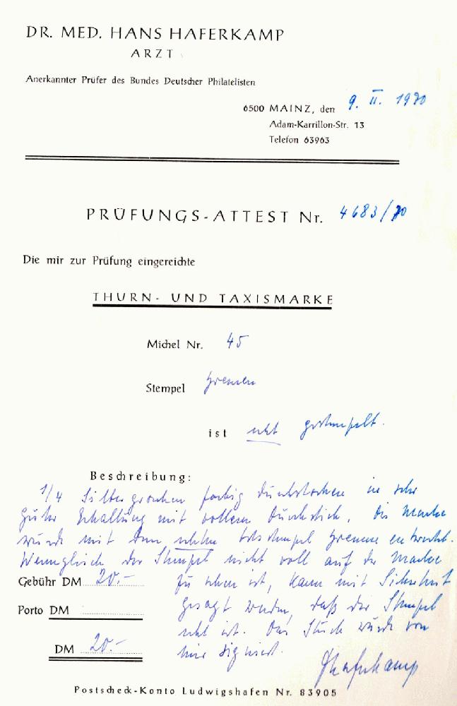 | Prüfgebiet: | Altdeutschland Thurn und Taxis |
