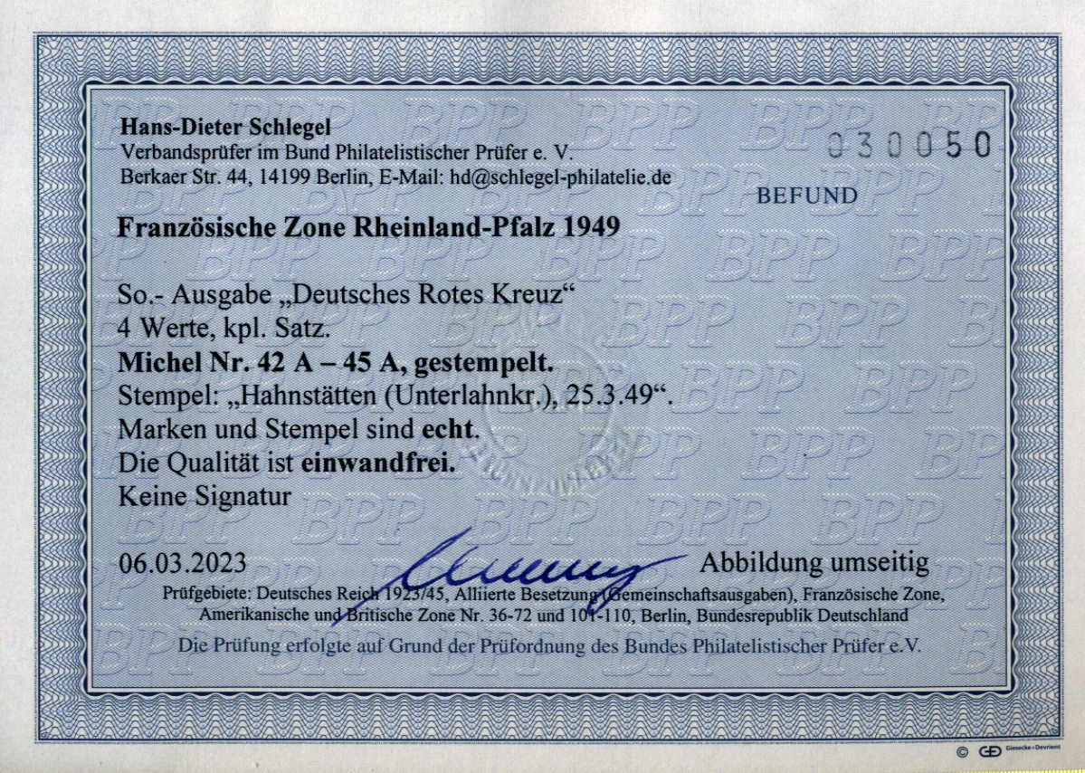 | Prüfgebiet: | Alliierte Besetzung Französische Zone Rheinland-Pfalz |