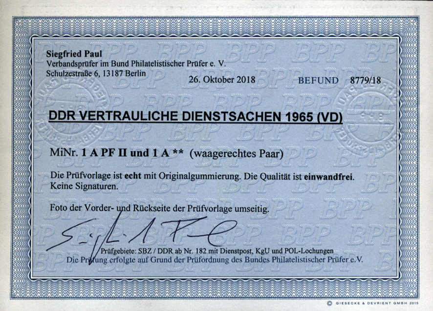 | Prüfgebiet: | DDR Dienstmarken - D Vertrauliche Dienstsachen |